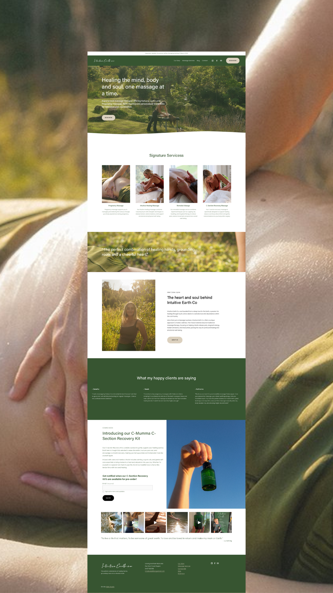 As part of the C-Mumma project, we refreshed the Intuitive Earth Co website to create a space that truly reflects Catee’s nurturing and heartfelt approach to helping mothers heal. The goal was to make the site feel welcoming, calm and supportive, just like the care Catee provides in her work.